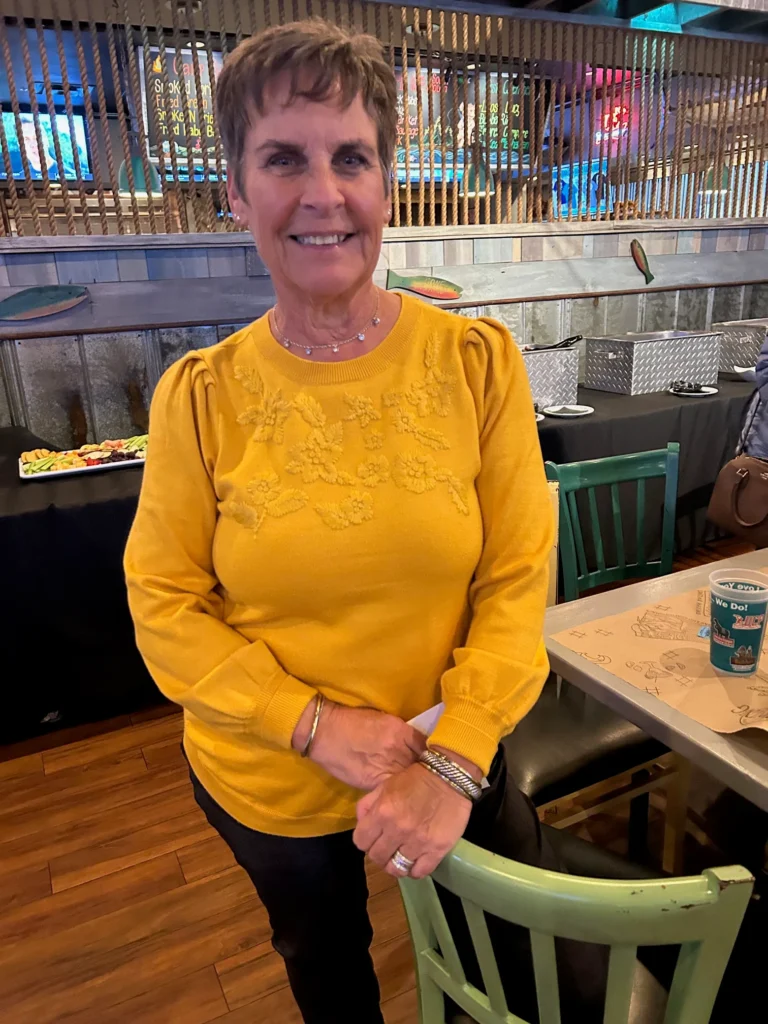 Caroline has served as Captain of the 55+ 4.0 Women’s Team at Kingston Plantation for the past several years, leading her players to the State Championships every year. She grins broadly when asked how much she loves the sport she’s been playing since the ripe old age of 6. It was actually her local preacher who started her playing tennis as a child, she recalls. “He built an asphalt court behind the church and taught tennis lessons to all the children. I just loved it and continued to play all through high school.”